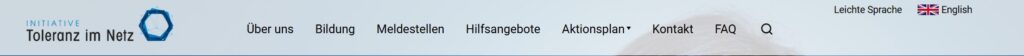 Neben dem Logo der Initiative Toleranz im Netz ist die Menü-Zeile.