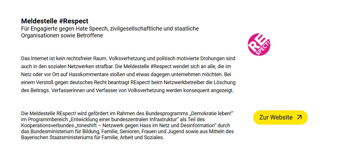 Hier zum Beispiel die „Meldestelle #Respect“.